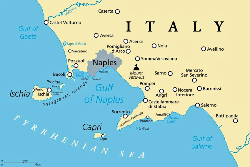 Vị trí: Nằm ngoài khơi bờ biển Amalfi, trong Vịnh Naples, miền nam nước Ý.