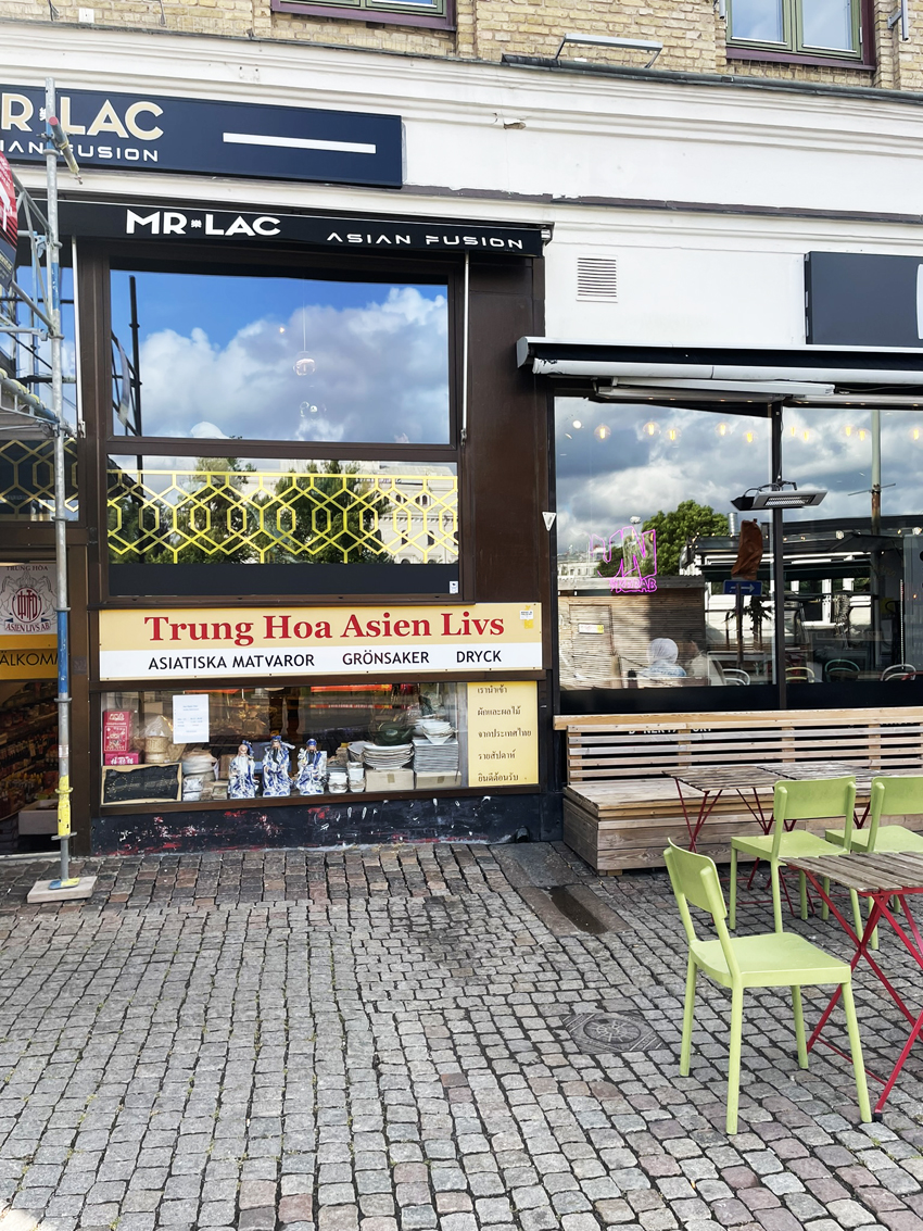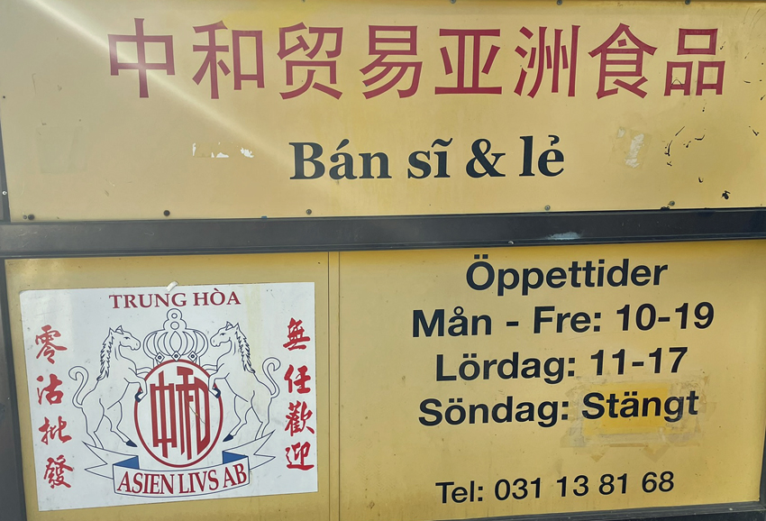 Những bảng hiệu tiệm buôn quán xá chung quanh khu vực.