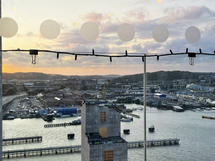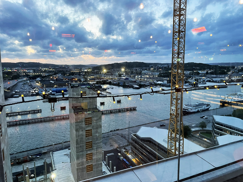 Từ trên quán cà phê ở tầng cao nhất của khách sạn, nhìn xuống khu bến tàu. Trời hơn 10 giờ tối mà vẫn còn sáng.