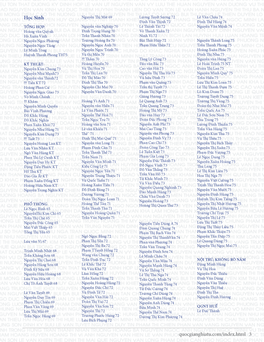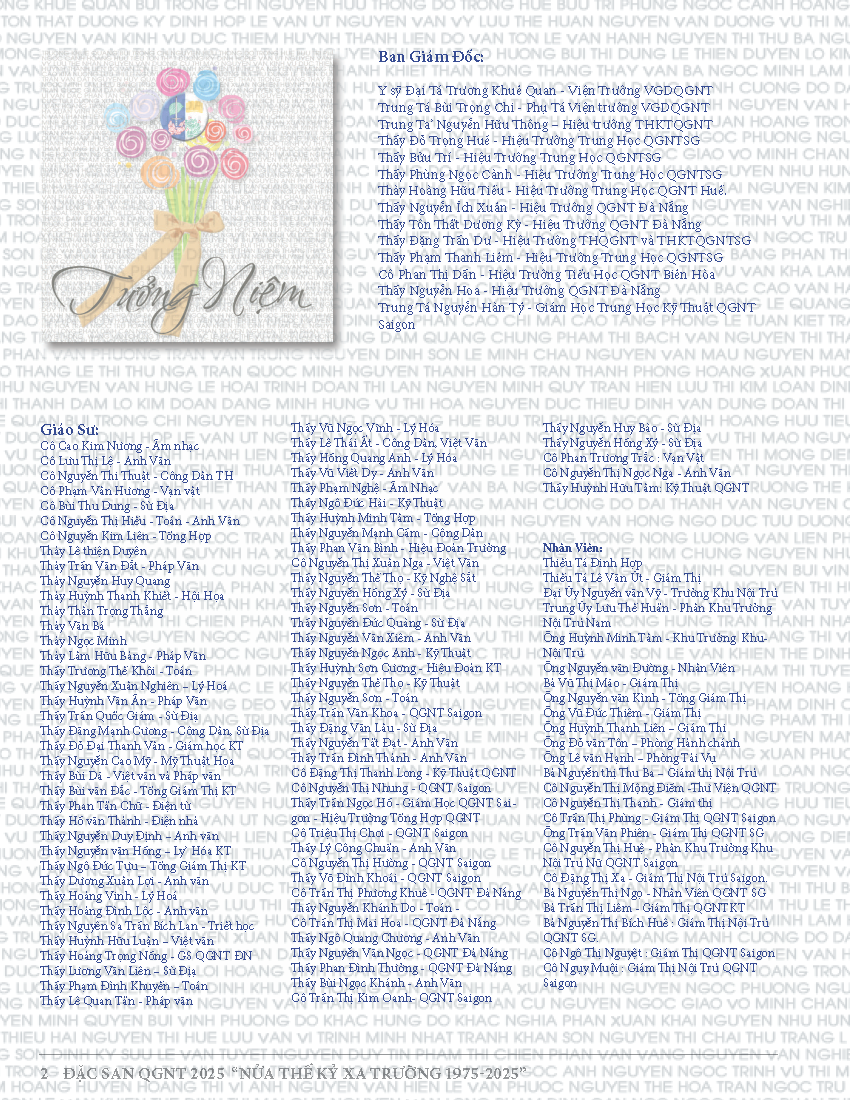 Nhân ngày Lễ Memorial Day 2025, Gia Đình Quốc Gia Nghĩa Tử Tưởng Nhớ đến các Viên Chức, các Thầy Cô và các Học Sinh đã quá vãng trong 50 Năm qua và các thành viên QGNT và gia đình đã ra đi trong năm 2025 và cuối năm 2024: