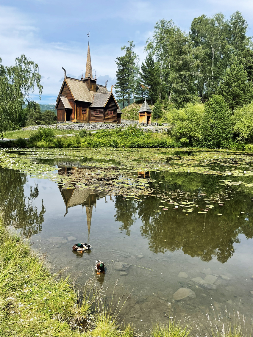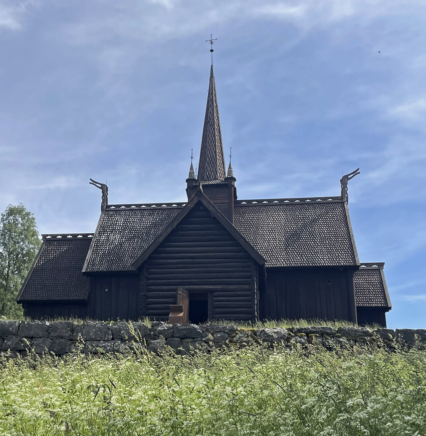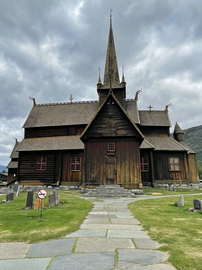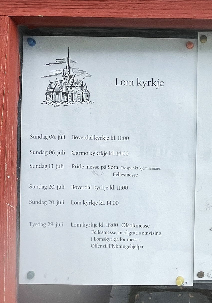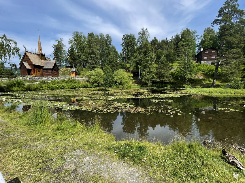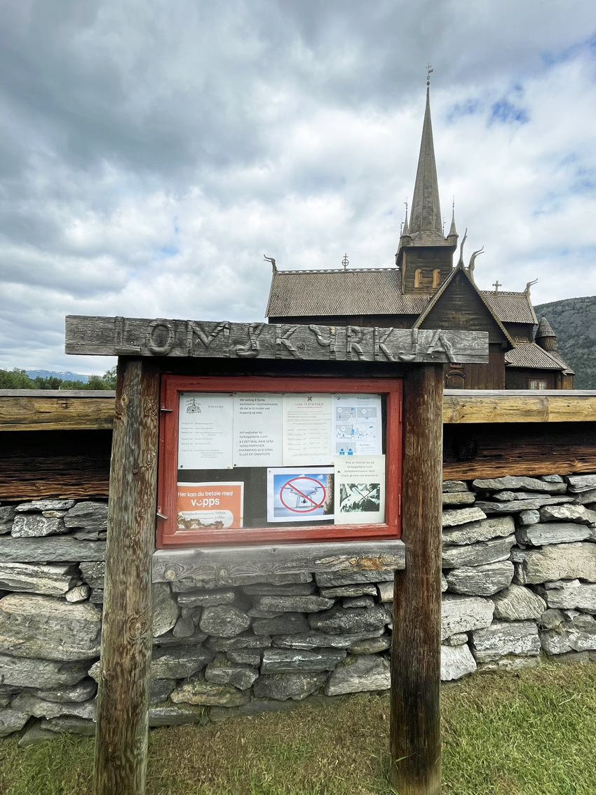 Tại ngôi làng Lom này có một nhà thờ gỗ lớn nhất và được bảo tồn tốt nhất Na Uy. Được xây dựng vào khoảng năm 1150, mặt tiền độc đáo của nhà thờ dường như được lấy cảm hứng từ một câu chuyện cổ tích thời trung cổ.