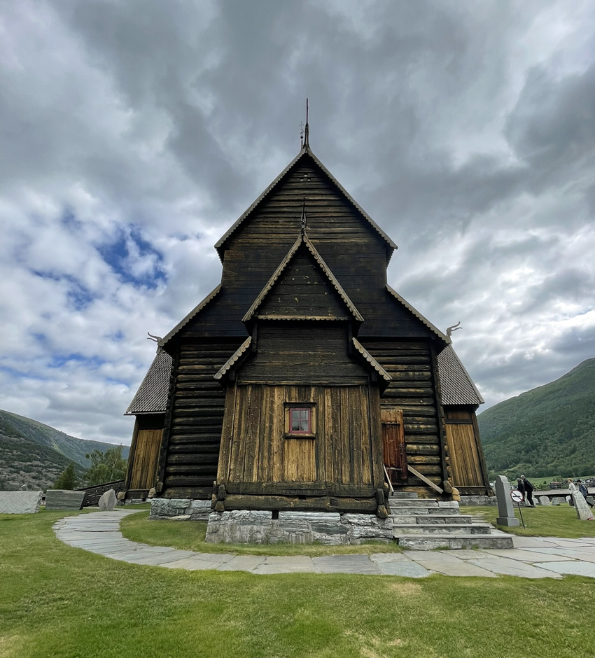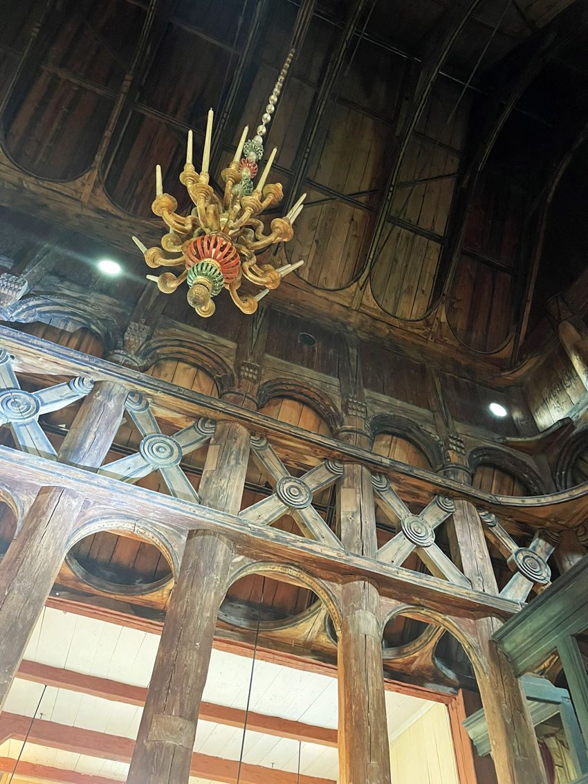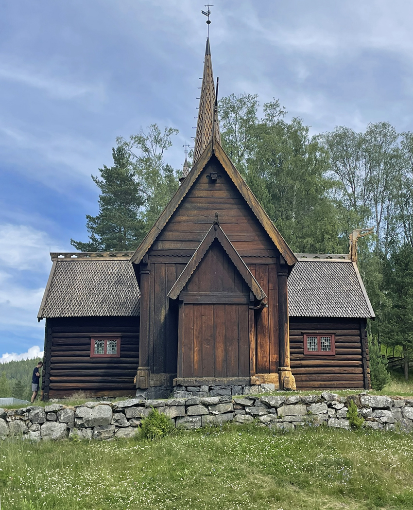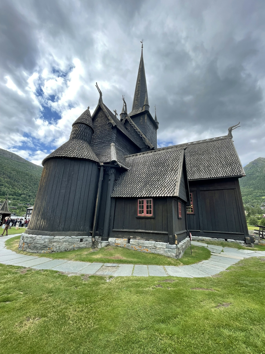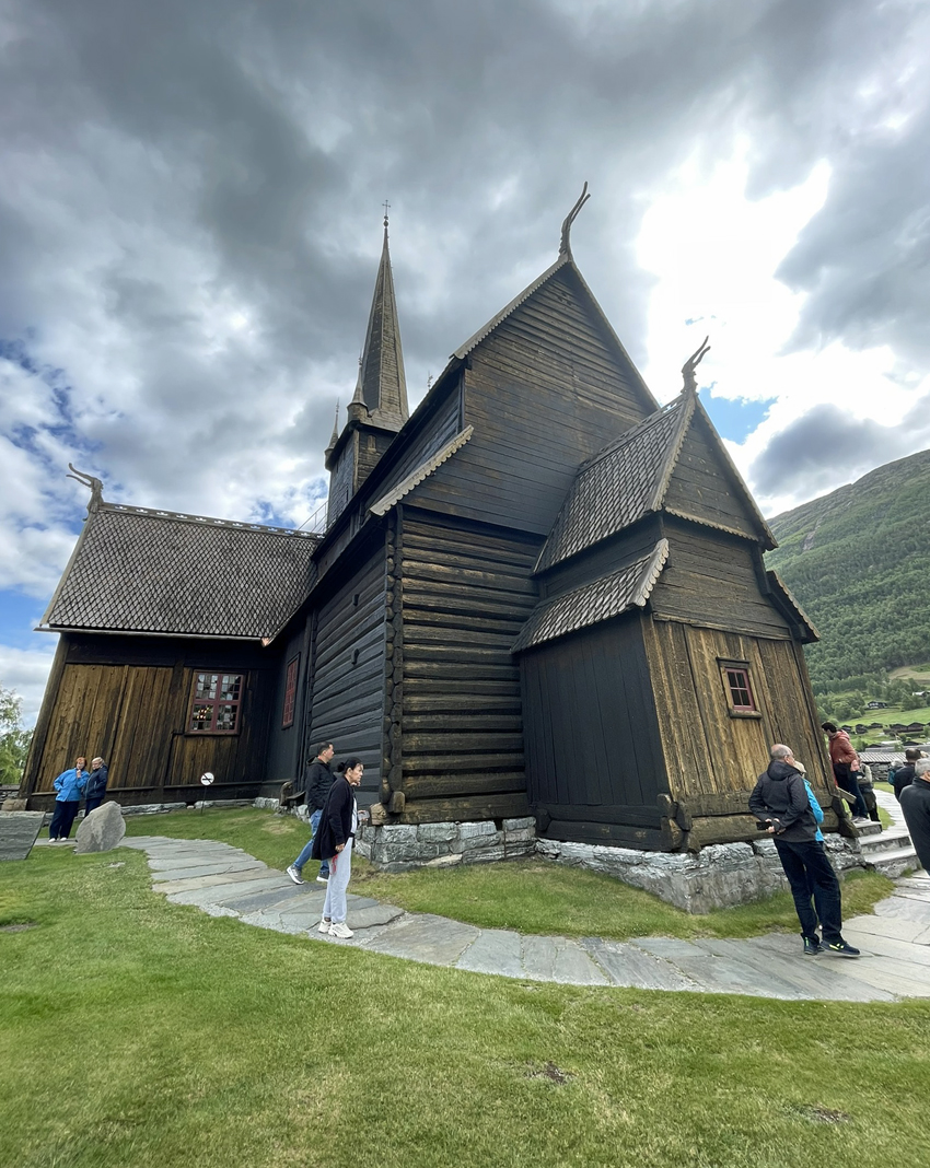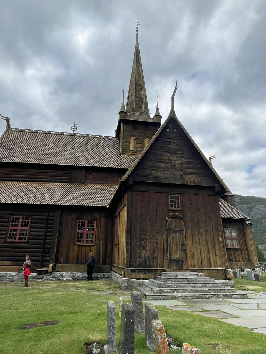 Tại ngôi làng Lom này có một nhà thờ gỗ lớn nhất và được bảo tồn tốt nhất Na Uy. Được xây dựng vào khoảng năm 1150, mặt tiền độc đáo của nhà thờ dường như được lấy cảm hứng từ một câu chuyện cổ tích thời trung cổ.