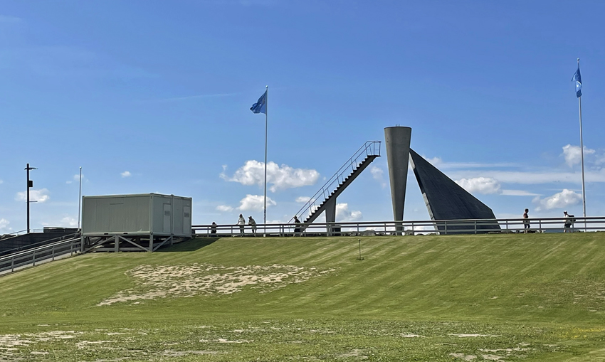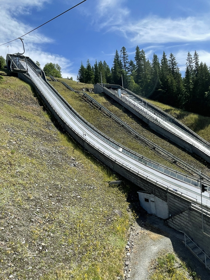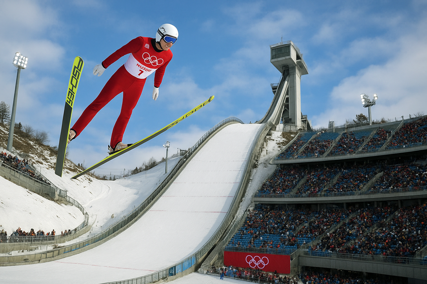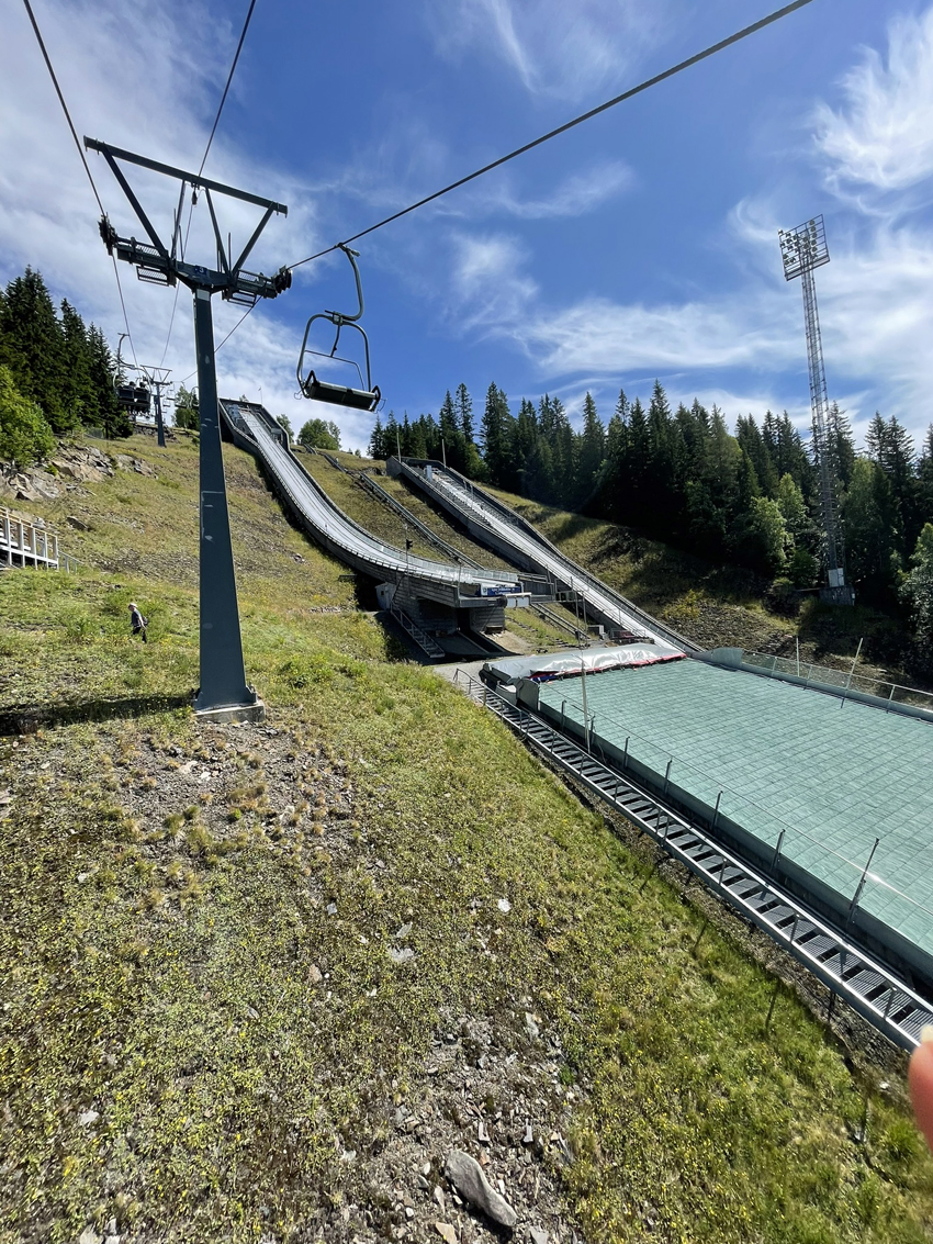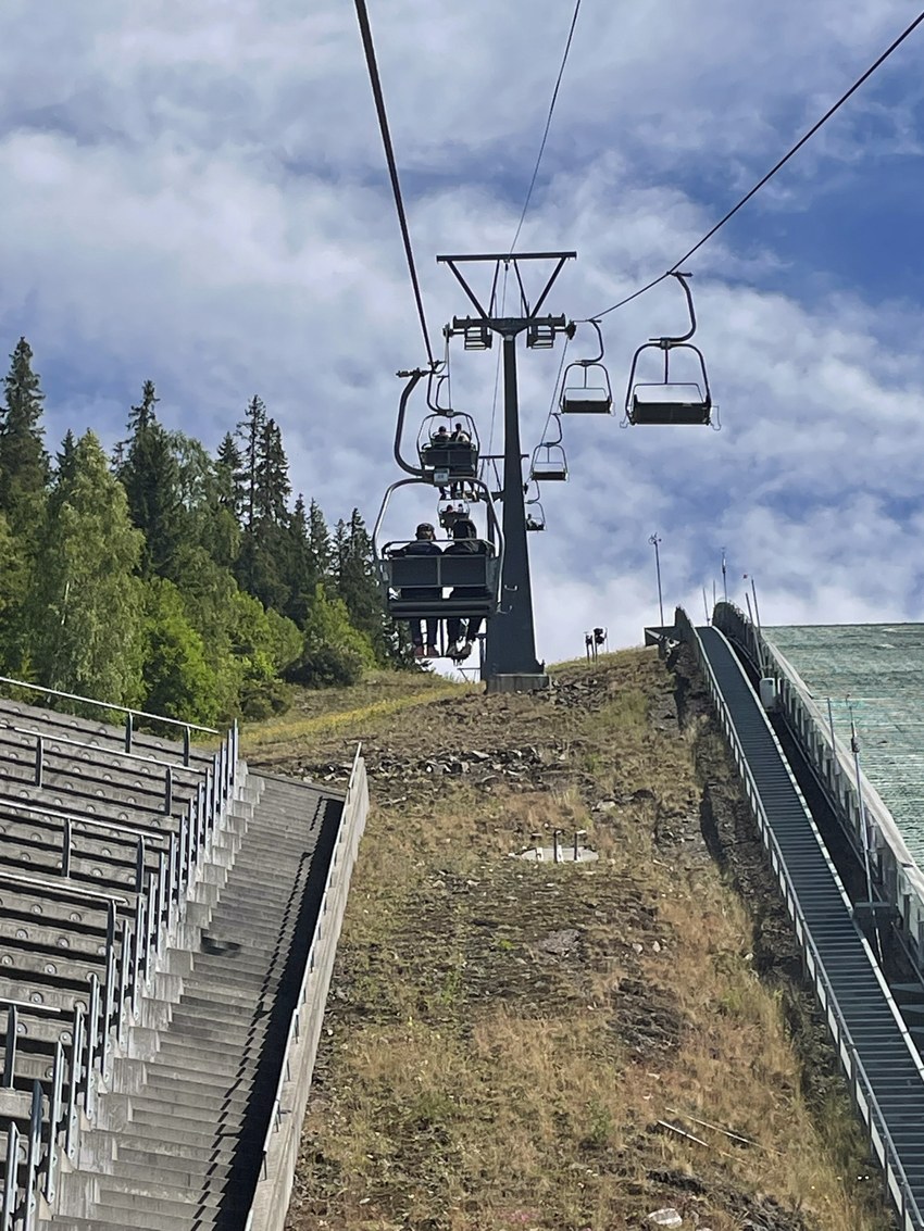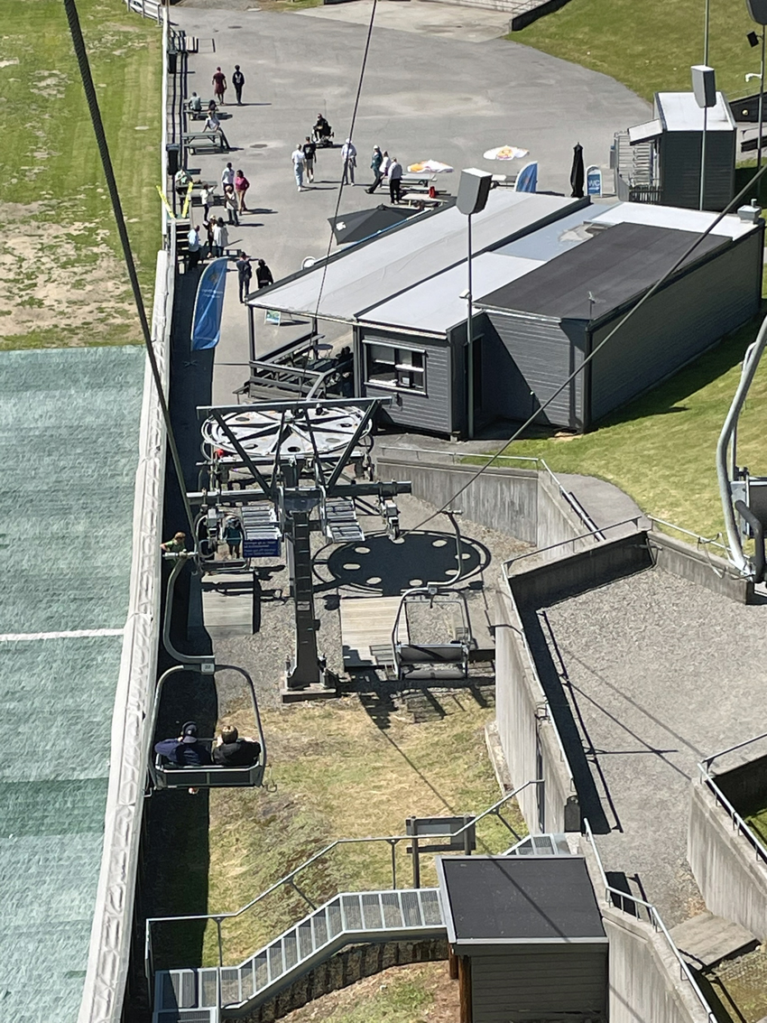 Du khách có thể mua vé đi Chairlift lên đỉnh nơi các lực sỹ bắt đầu nhảy ski và có thể nhìn xuống cảnh quan bên dưới.