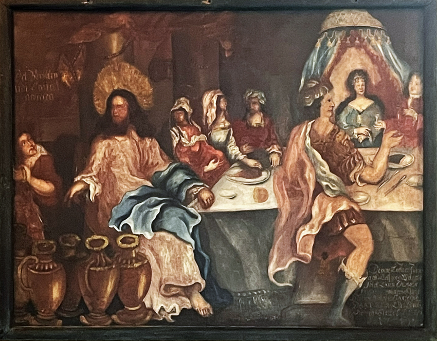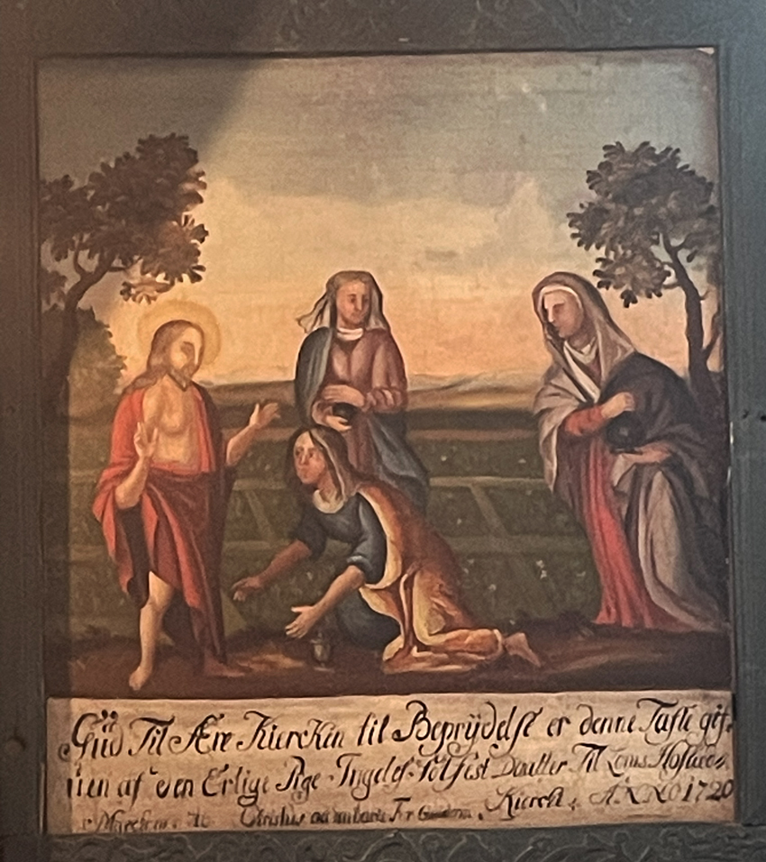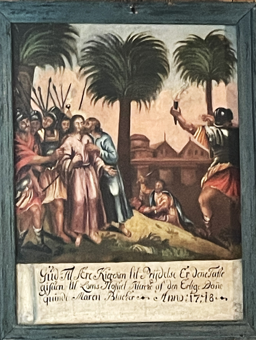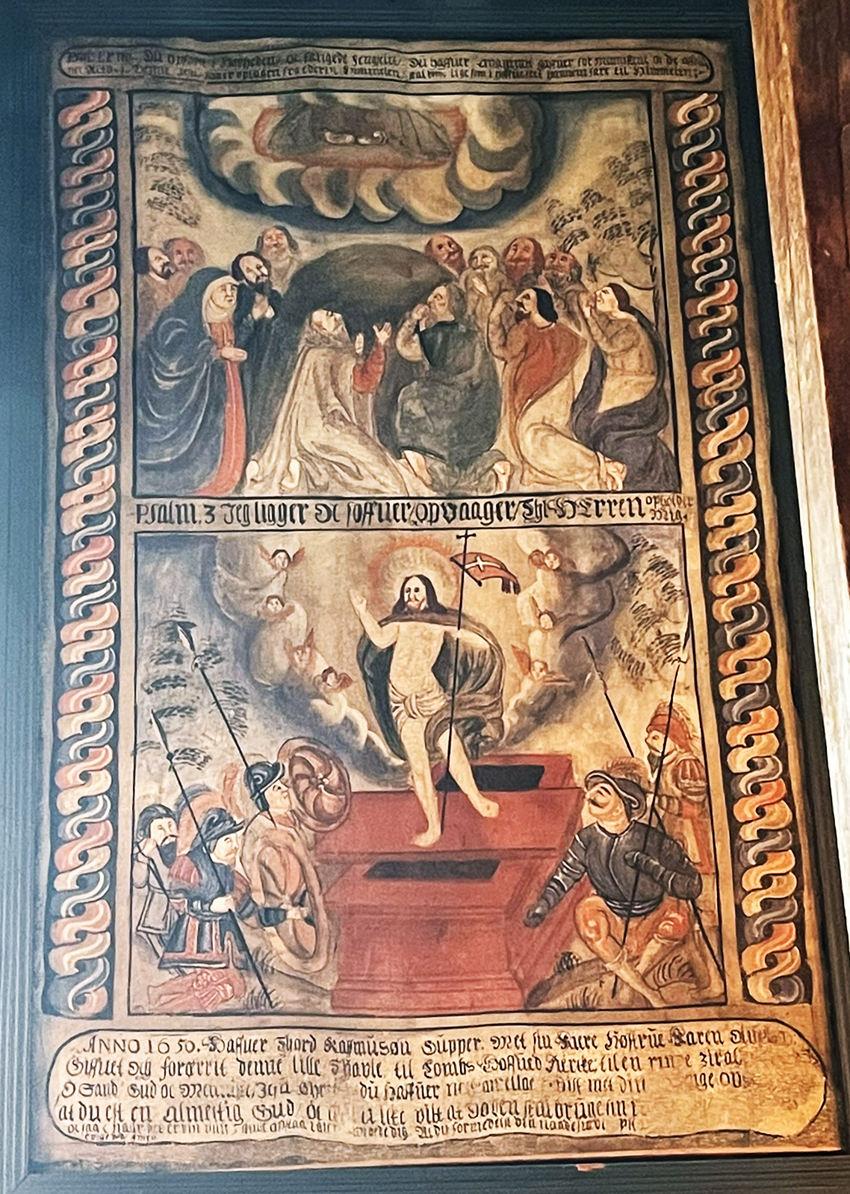 - Các bức tranh vẽ theo thánh kinh được treo hai bên tường trong nhà thờ.