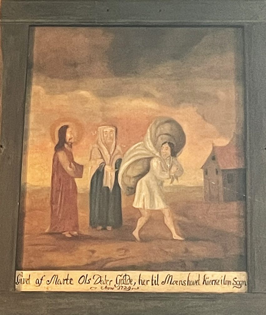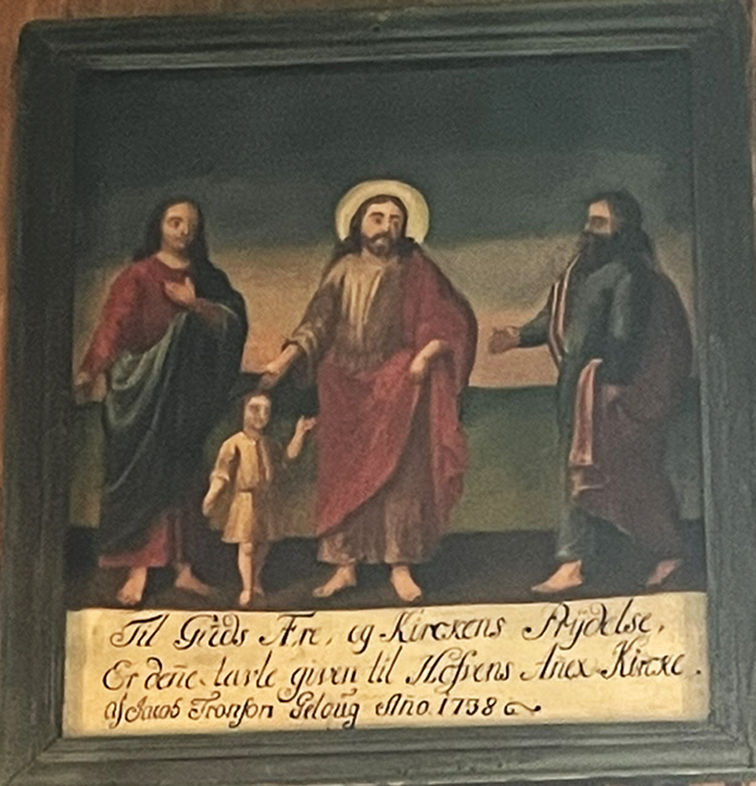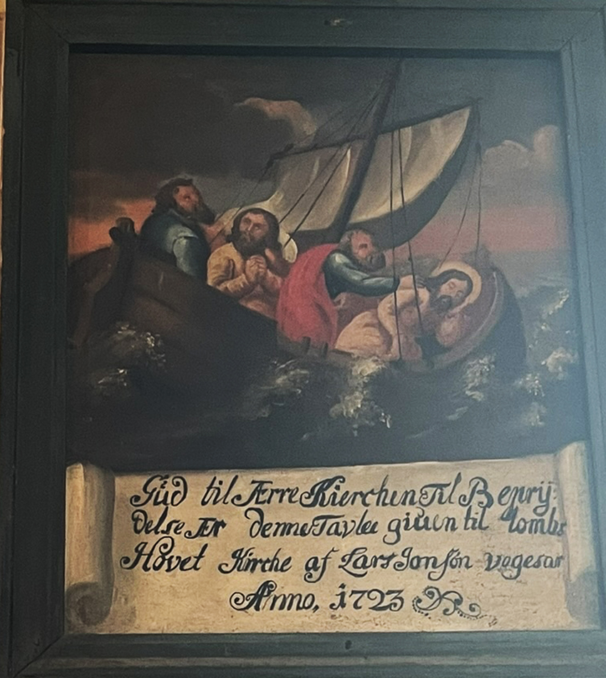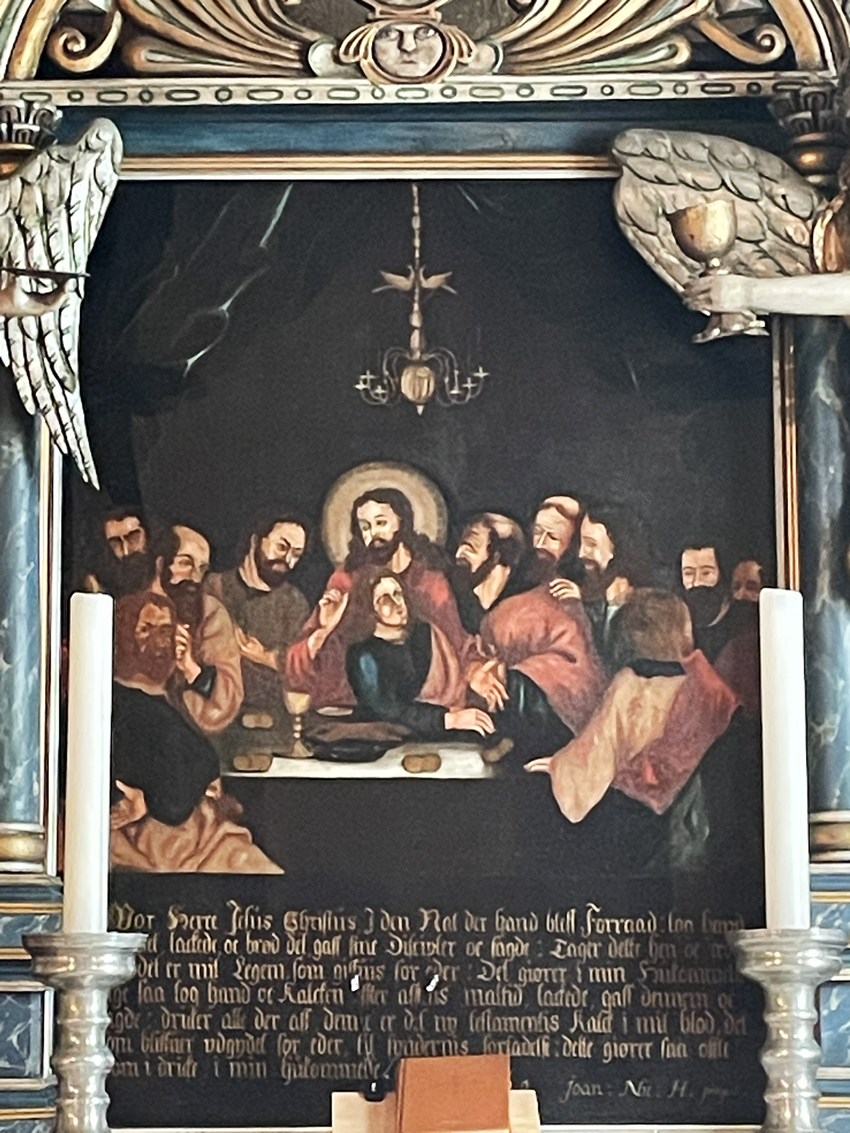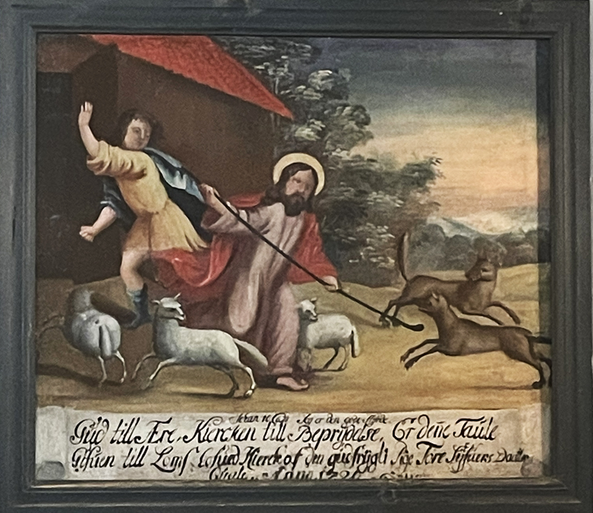- Các bức tranh vẽ theo thánh kinh được treo hai bên tường trong nhà thờ.