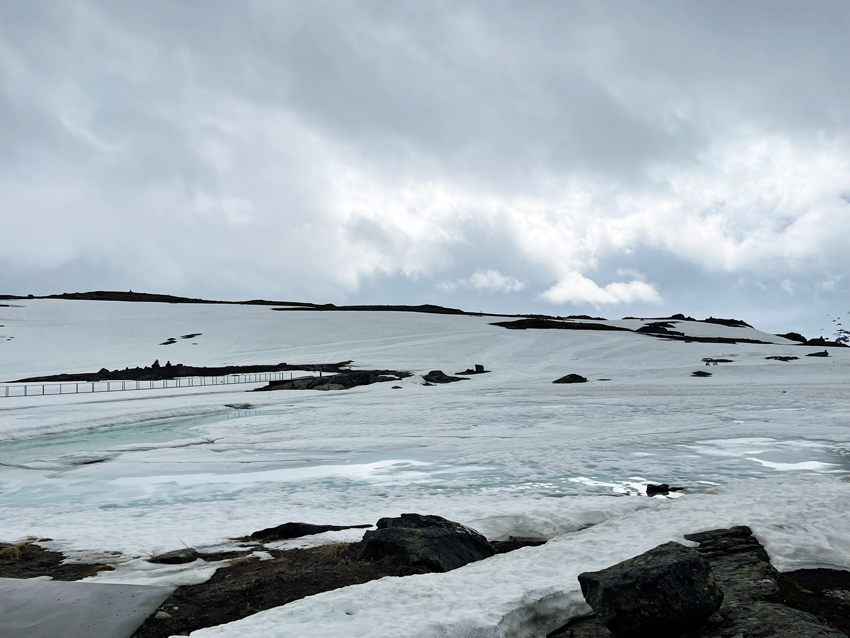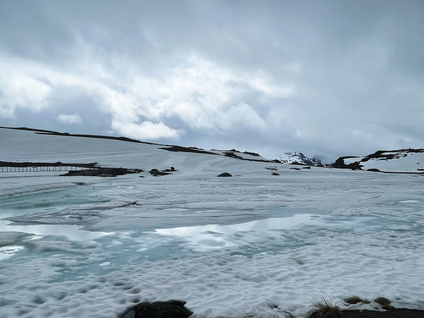 Trời cuối tháng 6 mà tuyết còn đóng khá dầy.