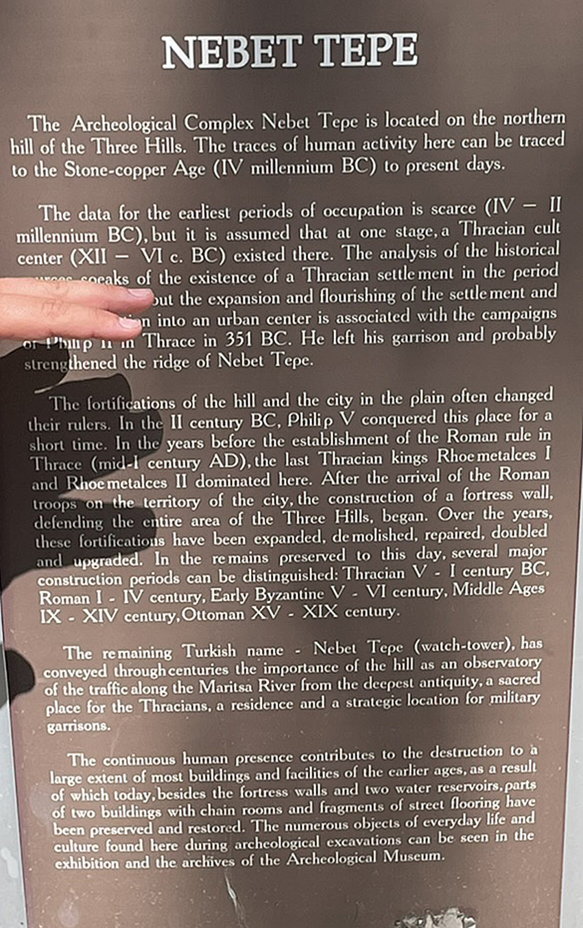 - Ban đầu, người Thracia định cư tại đây, sau đó được Philip II của Macedonia và Đế chế La Mã mở rộng. Khi thị trấn mở rộng, Nebet Tepe trở thành thành trì bảo vệ của khu vực bên dưới.