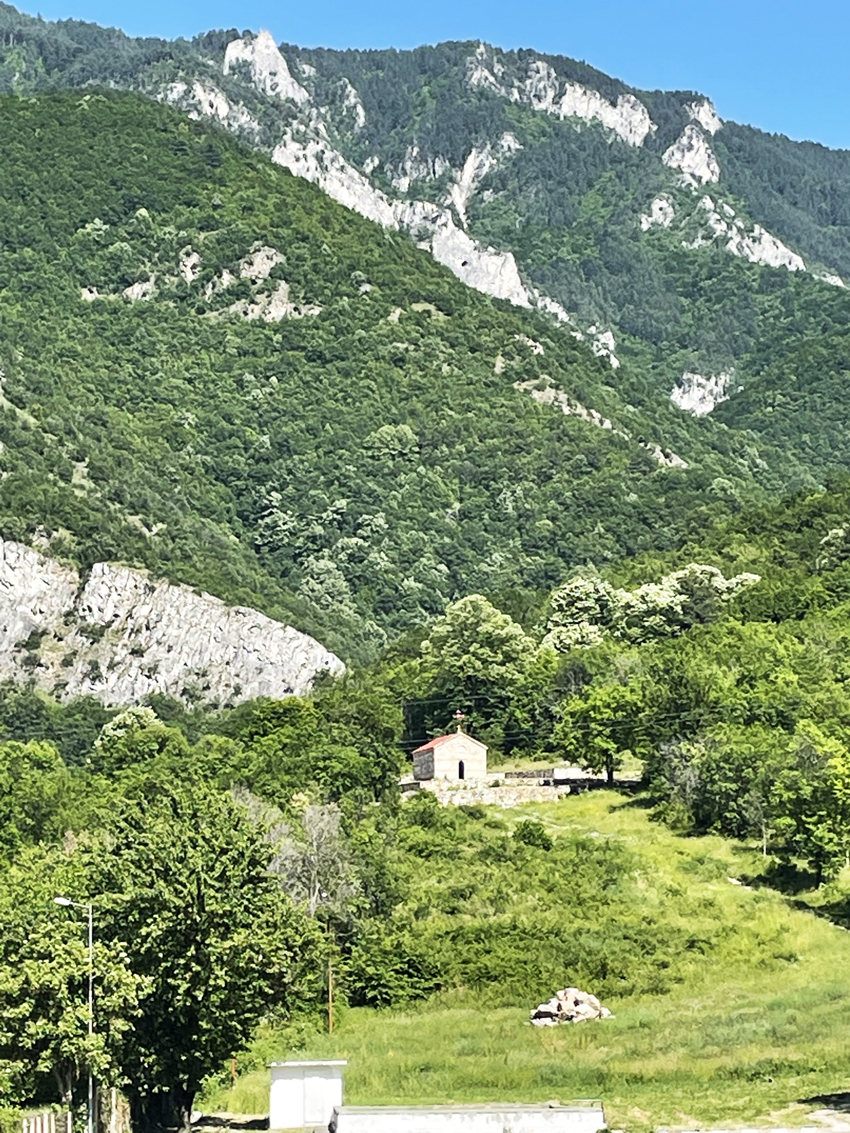 Nhìn xa trên vách núi có ngôi nhà nguyện.