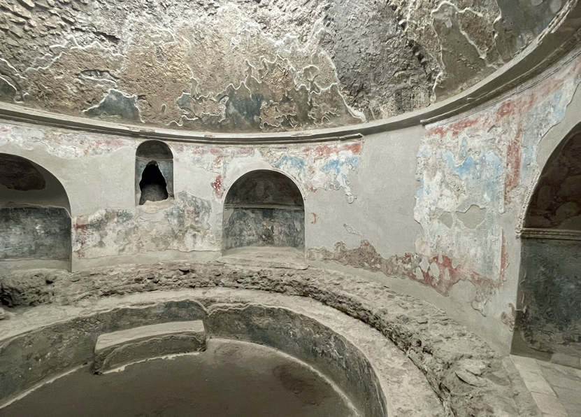 Hồ bơi nước nóng với các hốc có thể chứa tượng tại Nhà tắm Stabian