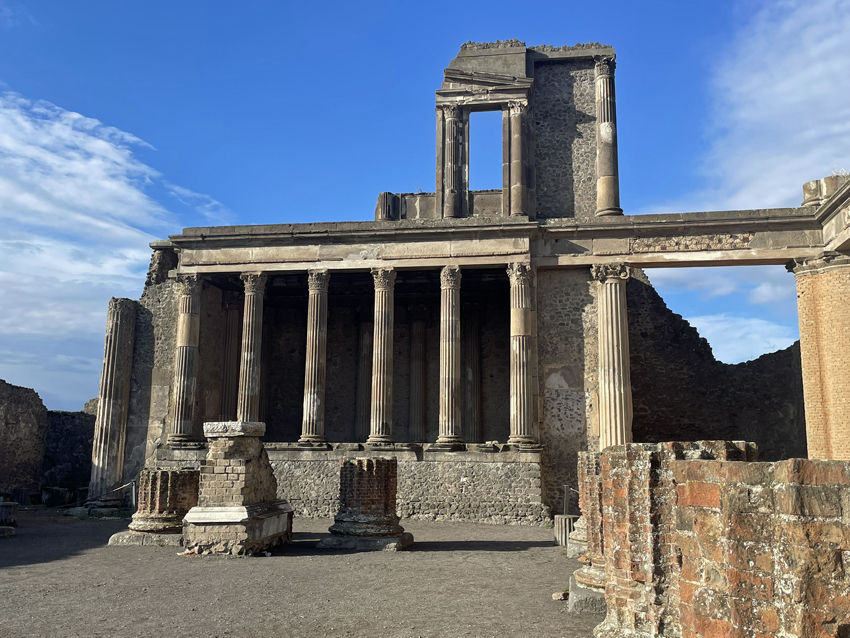 Các cột Doric bao quanh cung điện (sân tập thể dục) tại Nhà tắm Stabian