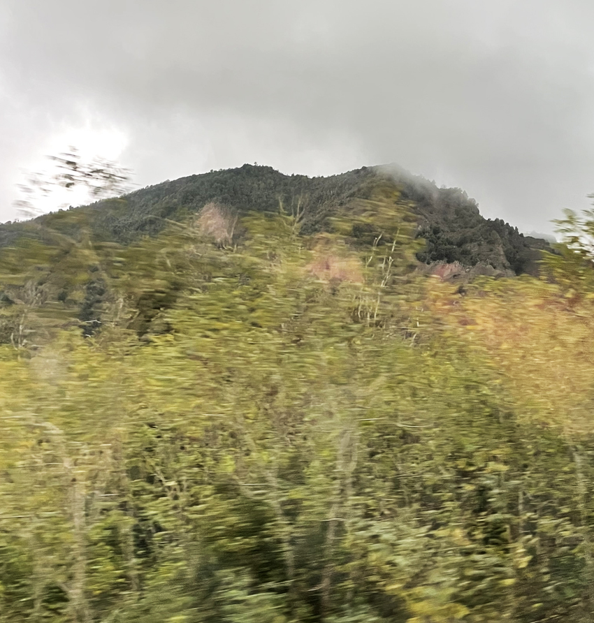 Các hình chụp từ trên xe bus chạy từ bãi đậu xe phía dưới đến đầu đoạn đường mòn cho du khách đi bộ lên núi. Đoạn đường mòn này được cho biết là dài khoảng 1 cây số rưỡi. Không xa lắm nhưng nhiều đoạn rất dốc.