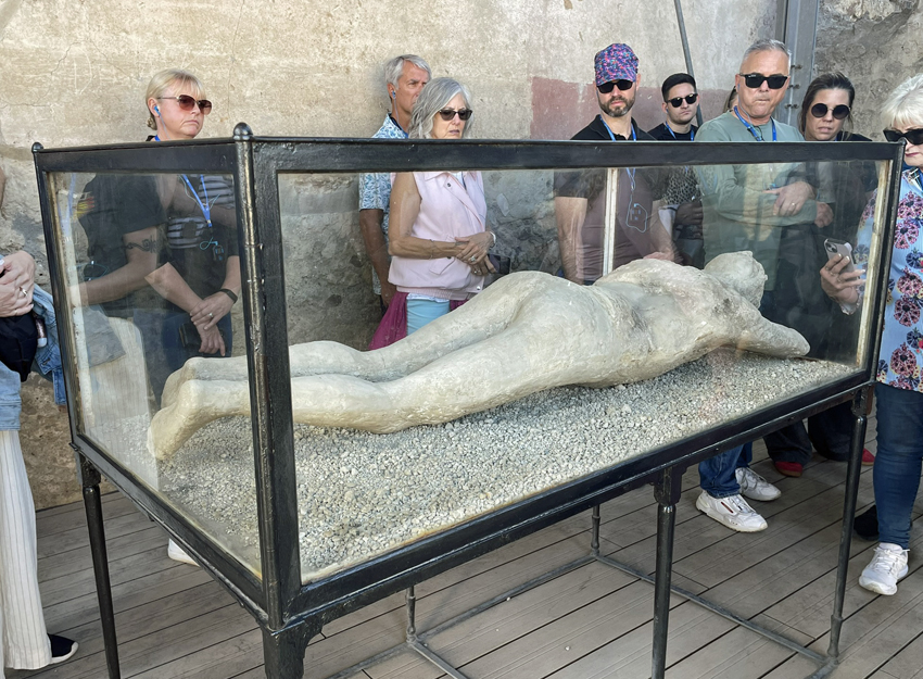 Phiên bản mô phỏng nạn nhân của núi lửa Vesuvius, Pompeii - Nạn nhân của vụ phun trào núi lửa Vesuvius năm 79 sau Công nguyên được tưởng niệm một cách xúc động bằng những khuôn đúc mô phỏng các hốc do thi thể họ để lại trong tro bụi. (ảnh: Addie Mannan)