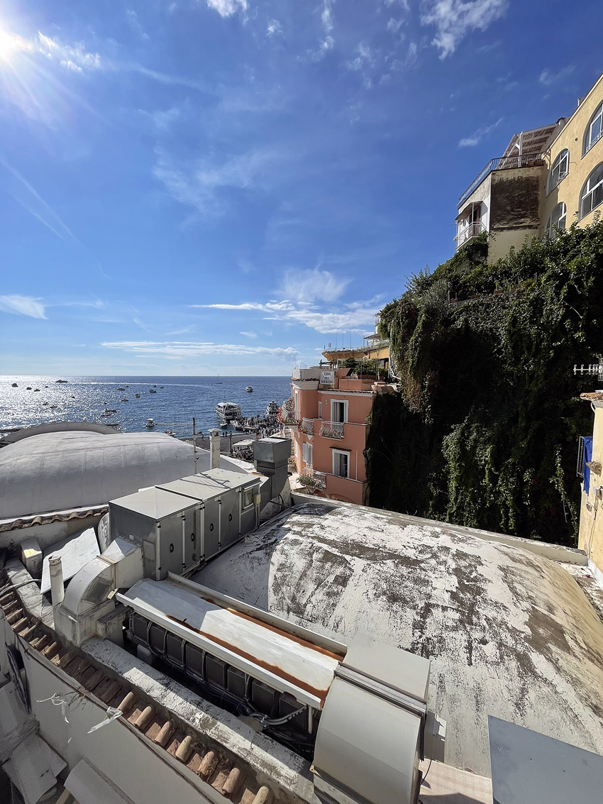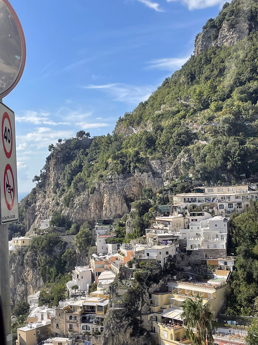 Thành phố Positano cũng như các thành phố ven biển Amalfi nằm trên vách núi nên những ngôi nhà được xây xếp tầng hướng ra biển. Vì nằm trên các triền núi nên các khu phố thị cũng được xây dựng khá chật chội. Các đường xe chạy cũng hẹp chỉ đủ cho hai xe ngược chiều tránh nhau rất sát.
