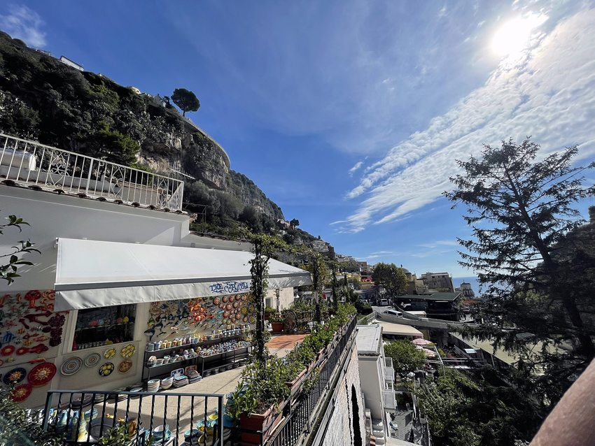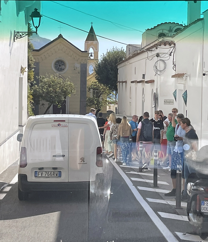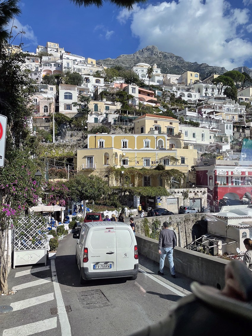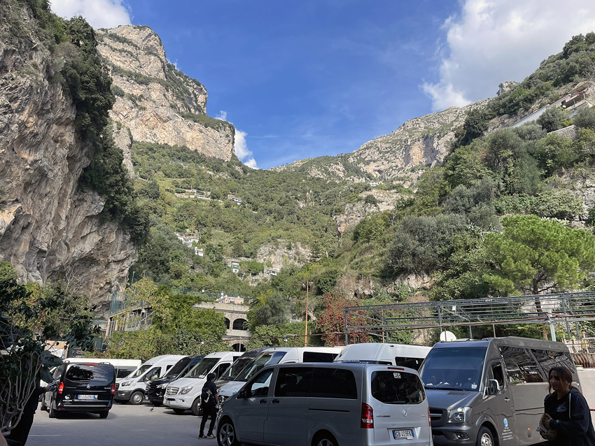Xe bắt đầu vào thị trấn Praiano nơi có bãi biển Fiordo di Furore nổi tiếng.