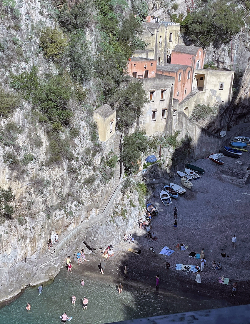 Fiordo di Furore (chụp từ trên cầu) là một bãi biển tuyệt đẹp được bao quanh bởi những vách đá cao nối liền với nhau bằng một cây cầu, tạo nên một địa điểm vô cùng đẹp như tranh vẽ. Nơi đây rất được ưa chuộng cho các du khách tắm biển và cho các tour du thuyền.