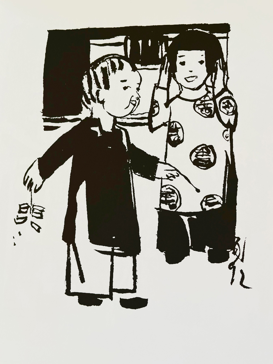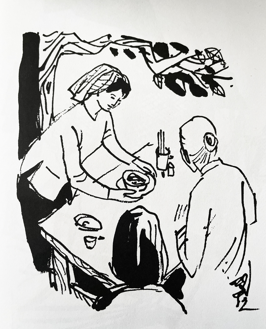 Vợ của người nông dân vội vã chạy đến xem có cái gì không?