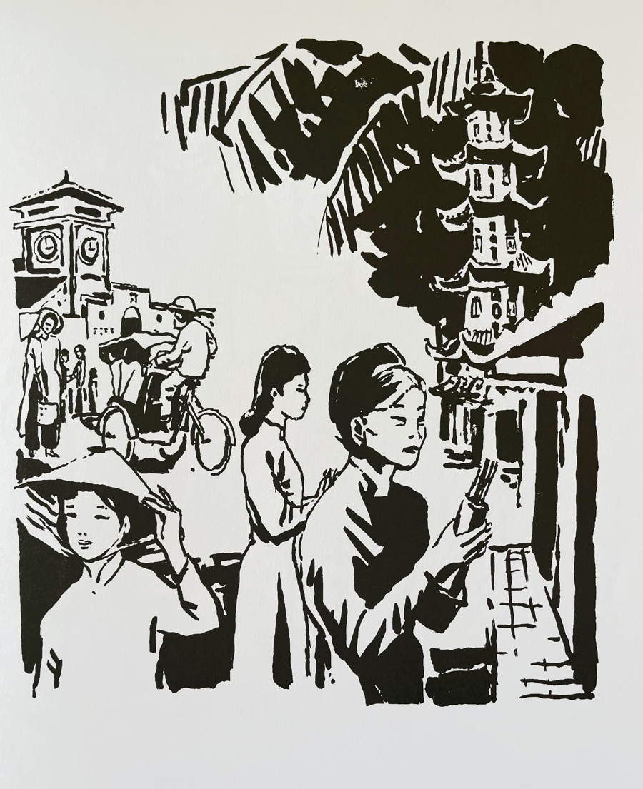 Và hôm đó một ngày nắng xuân chan hoà, gió lâm râm, người “ngậm tăm, ngựa ngậm thẻ,” hy vọng cái xe không dở qủe . . . đoàn “công-voa” đạp ra đường Lê Văn Duyệt, trực chỉ hướng Cống Bà Xếp, qua khám Chí Hoà, tới ngã 5 Sè Goòng . . . rồi quẹo vô Kỳ Đồng. Đi một quãng nữa quẹo trái vô Nguyễn Thông là thấy BCCB thấp thoáng từ xa. Cả bọn ngừng lại, dựng xe sát vào nhau trên lề đường, xa cổng khoảng 100 m. Bán buôn phải có bài bản, chuyện trò, thưa gửi ngọt ngào . . .mục này các đực rựa coi như chào thua các bạn nữ sinh thì thào duyên dáng, trong tà áo dài. Riêng bạn ta tự biết mình thuộc loại ăn thô, nói bi bô, khô khốc . . . đã tình nguyện ở lại giữ xe. Cả toán tay ôm chồng báo cao ngất, chân hăm hở thấp, cao vào cổng, khí thế hăng say, phen này chắc tha hồ hốt bạc . . .