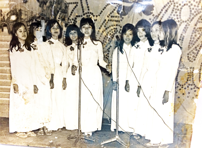 Một tấm ảnh đã úa vàng, trầy tróc – ghi lại hình ảnh Ban Hợp Ca Khu Nội Trú QGNT trong nhạc phẩm Nỗi Buồn Hoa Phượng của NS Thanh Sơn, được trình diễn trước mùa chia tay cách nay hơn 50 năm (Photo: Album GĐ)