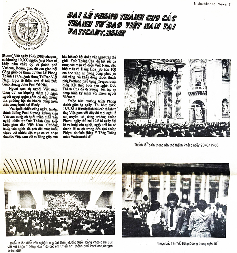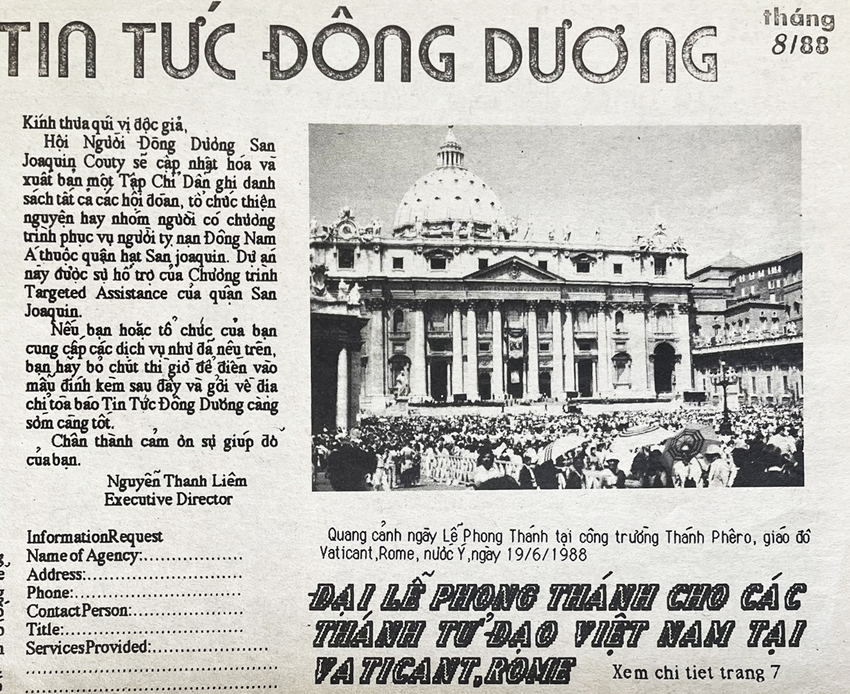 Tờ báo Indochina News ṭai San Joaquin County, California có đăng tin về buổi Đại Lễ này.