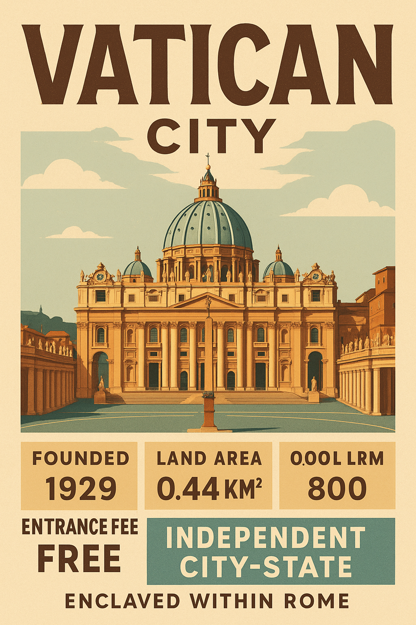 Dân số: Khoảng 800 người (chủ yếu là giáo sĩ, Vệ binh Thụy Sĩ và các quan chức). Có khoảng 8 triệu du khách mỗi năm.