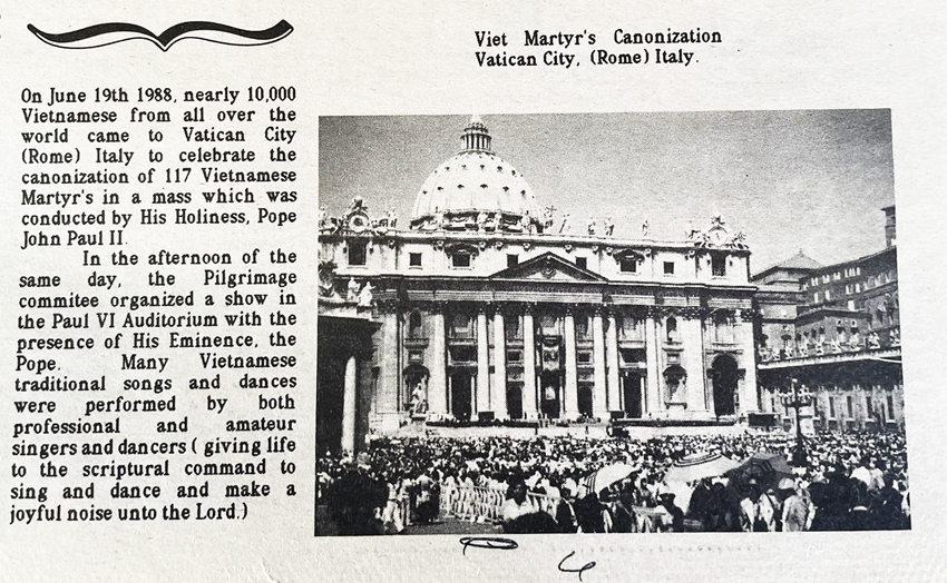 Tưởng cũng nên nhắc lại, cũng tại quảng trường thánh Phê rô này cách nay 37 năm, ngày 19 tháng 6 năm 1988, có buổi Đại Lễ Phong Thánh cho 117 Thánh Tử Đạo Việt Nam do Đức Thánh Cha John Paul II chủ tế.